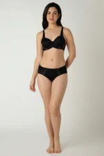 Folded mesh detail at the neckline to give a subtle coverage & support, together with a chic look