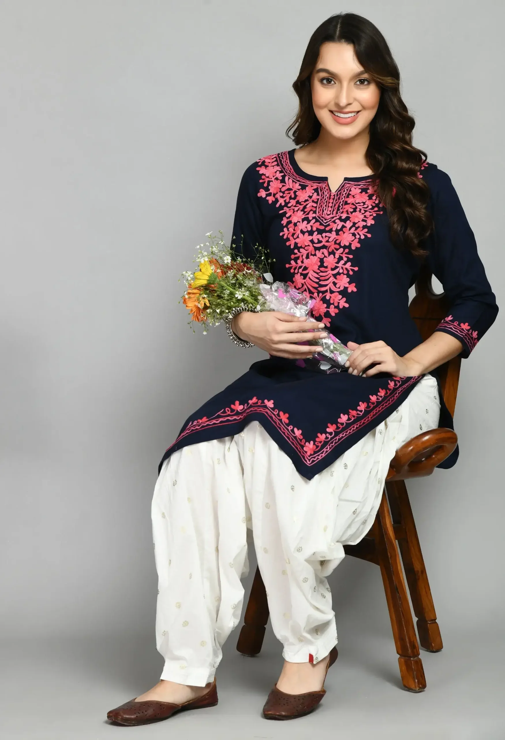 Look ethereal in this Aari work kurti, freshly crafted in the lightness and comfy feel of cotton.