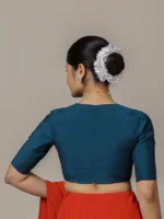 Damini x Rozaana | Crystal Teal Elbow Sleeves FlexiFit Saree Blouse with Plunging Neckline