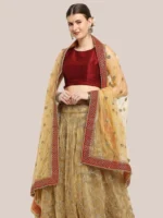 Swathe in the beauty of this stunning bridal dupatta in mesmerizing net fabric. So add this classic dupatta with zardosi handwork work to enhance your lehenga, kurti, anarkali or saree . Rich & regal, this heavily embroidered net dupatta from the house of Dupatta Bazaar would be a stunning and versatile addition to your wedding wear. Wrap around this astounding piece and grace your favourite occasion, festivals and weddings.