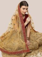 - Adorn yourself with this beautiful mustard Bridal dupatta featuring beautiful zardosi work. Wrap around this astounding piece with elegant embroidery and grace your favorite occasion