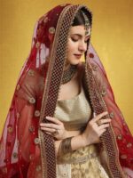 - This gorgeous net dupatta in auspicious colour can be used as a bridal Dupatta /Chunri to cover head and shoulders during functions and ceremonies. It can also be used to visit religious places and functions like mata ki chowki etc. This dupatta will be a wonderful addition to your wedding wardrobe.