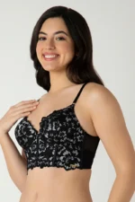 BLACK Femme Lace Padded Non-Wired Longline Bra