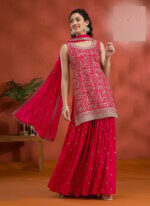 Red Georgette Embroidered Sequin Palazzo Set Festive Wear