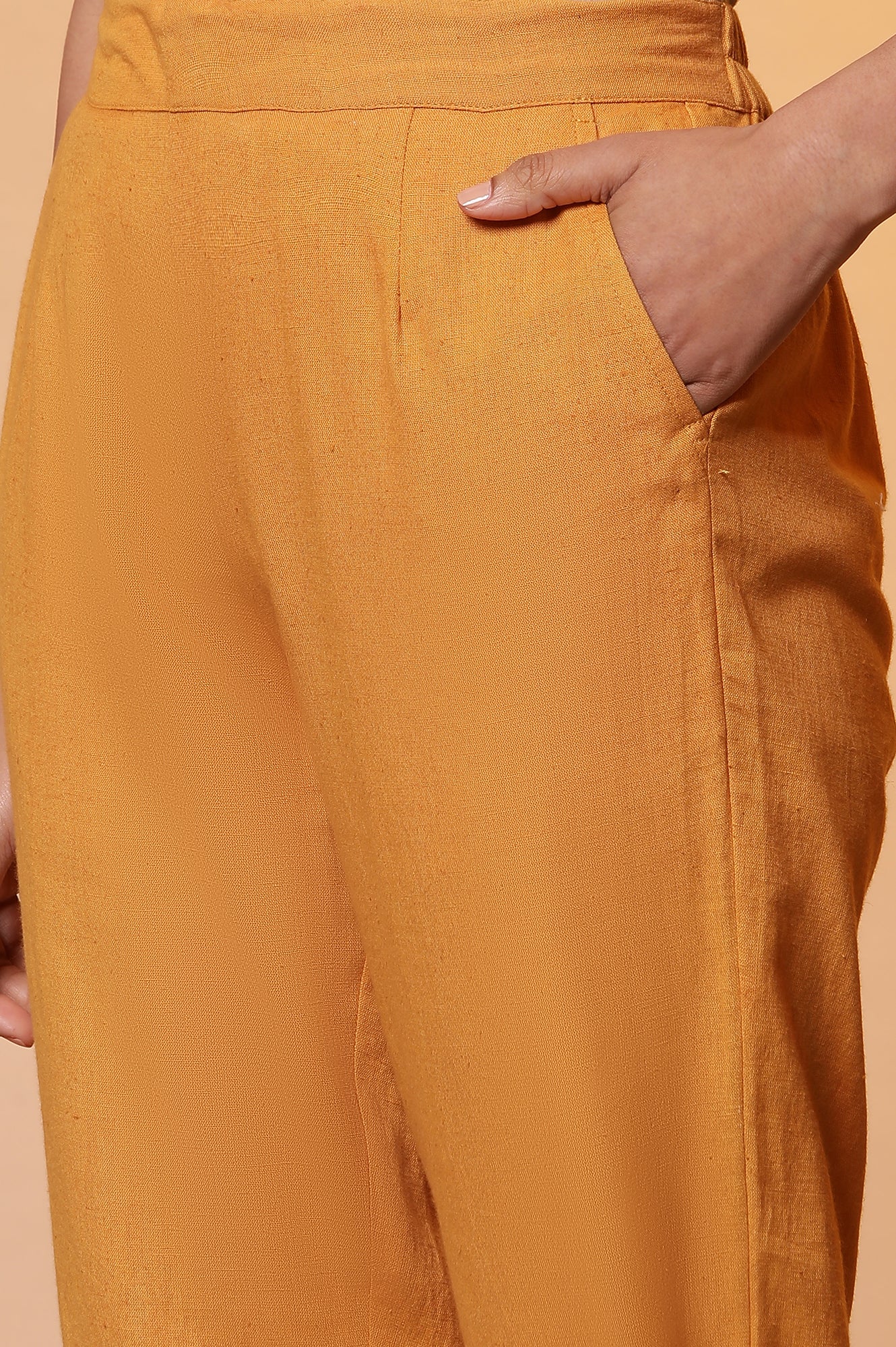 Home Palazzos & Pants Pants Mustard Lace Insert Pintuck Trousers