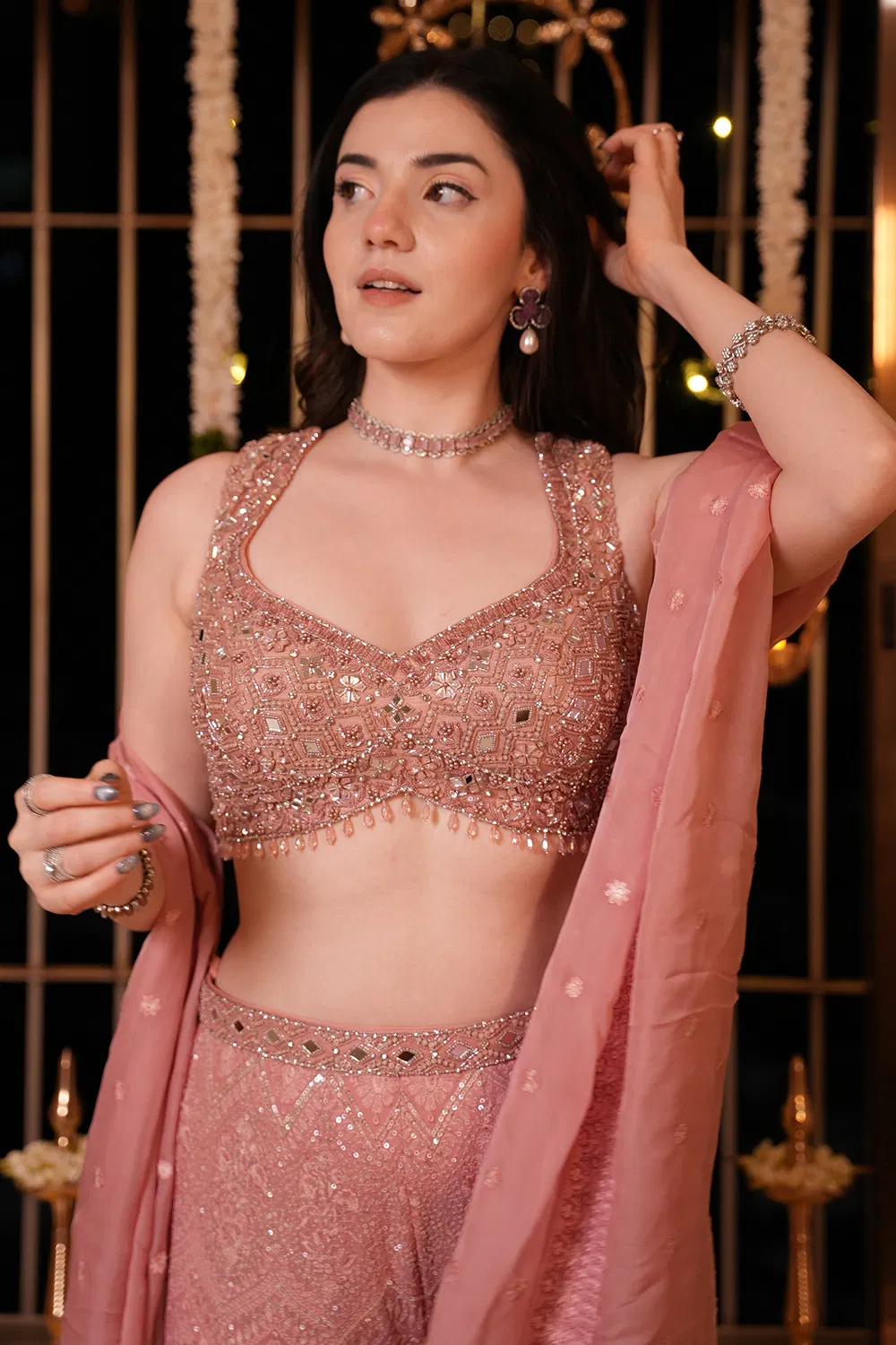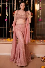 Elegantly crafted with intricate schiffli embroidery, this lightweight palazzo offers a perfect blend of comfort and style. The silhouette is designed for effortless movement, along with two side pockets, making it a versatile addition to both casual and formal wardrobes. Ideal for adding a touch of traditional charm with modern flair.