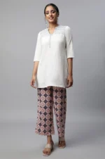 Co-ord set for women in airy white seer sucker fabric, this variation offers the same blend of elegance and comfort with a distinct finish. The kurta, designed with a modern silhouette, is paired with matching pants for a clean and minimal look. Ideal for casual outings, festive brunches, or small family gatherings, it is versatile and lightweight. The breathable texture of seer sucker ensures all-day comfort, especially in warm weather. Its timeless white shade allows for endless accessorizing, whether with bold jewelry or subtle accents. This co-ord set is a wardrobe staple that balances simplicity with elegance, making it perfect for women who love modern ethnic dressing.