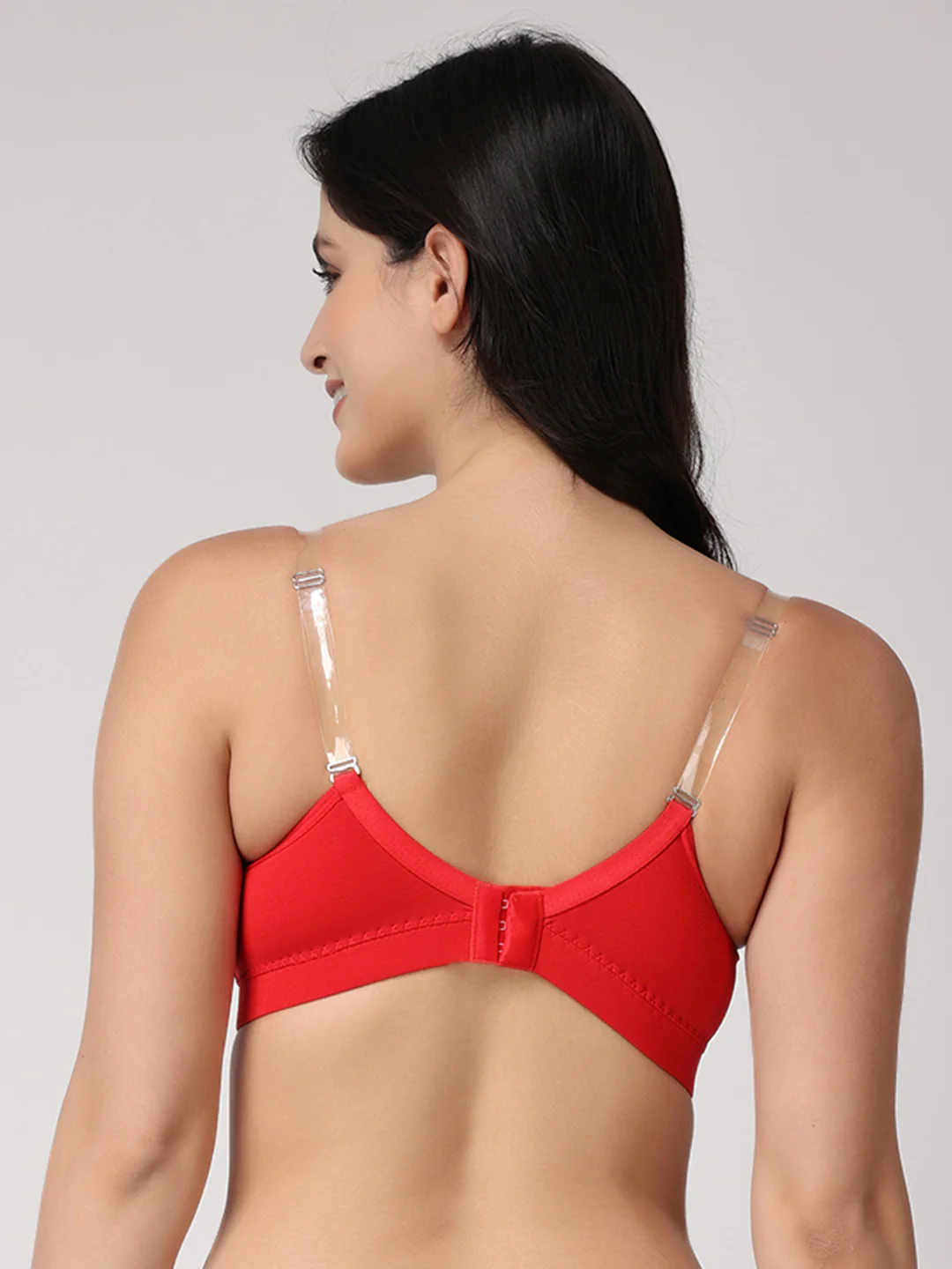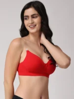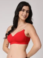 Home Bra Padded Bra  Red Full Coverage Heavily Padded Convertible-Straps T-Shirt Bra