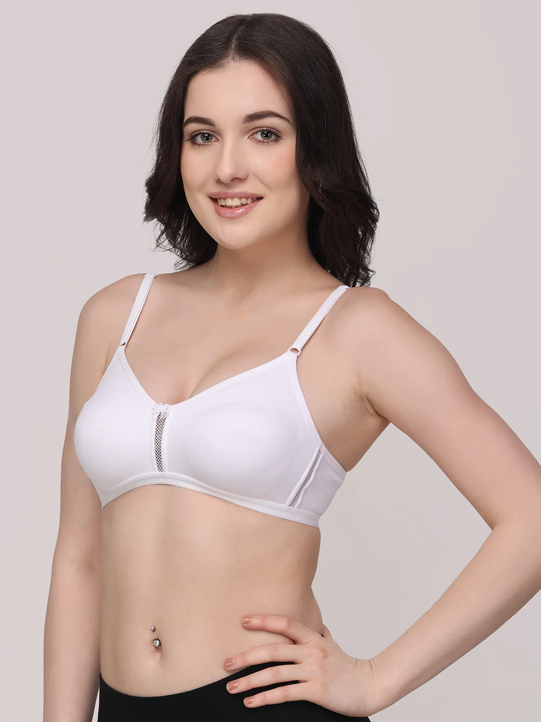For a flawless, streamlined silhouette, choose the Katrina Smoothing T-Shirt Bra. This versatile bra is crafted from a cotton-rich blend that offers medium coverage and a seamless, invisible appearance under your favorite tops and dresses. The non-wired, non-padded construction delivers reliable support without any bulky elements.