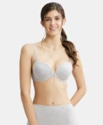Steel Grey Mélange Padded Wired Super Combed Cotton Elastane Stretch Medium Coverage Pushup Bra with Plunge Neck