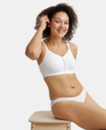 Home Bra Non Padded Bra White Super Combed Cotton Elastane Stretch Full Coverage Minimizer Bra