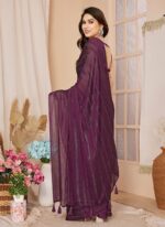 Wine Georgette Stone Embossed Pre Draped Elegant Saree With Blouse Party Wear