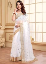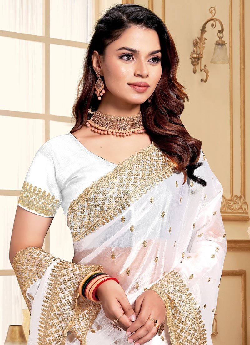 The Rust Zari Embroidered Sequins Saree is a stunning ensemble that perfectly blends elegance and craftsmanship. This saree is designed to make a bold statement with its luxurious Rust fabric enhanced by intricate zari embroidery and shimmering sequins. The combination of Rust with golden zari work creates a striking contrast, making this saree a showstopper for any grand occasion. The embroidery follows traditional patterns seamlessly blending with the modern sequins detailing, which adds a touch of contemporary sophistication to the attire. The saree drapes gracefully, exuding a timeless charm that complements various body types.